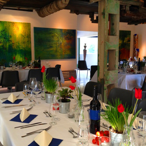 Die alte Betonmischanlage wurde in den letzten fünfzehn Jahren mit künstlerischer Leidenschaft in einen modernen Kunstraum umgebaut. Heutzutage ist der Kunstraum Kieswerk ein lebendiger Zusammenhang der industrieller Architektur und zeitgenössischen Kunstwerken. Es ist eine unkonventionelle Lokation, die viele Möglichkeiten für verschiedene Event-Konzeptionen bietet.
