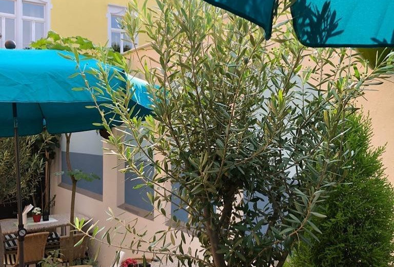 Eine schöne Sommerterrasse mit Kinderspielplatz ( eingezäunt ) befindet sich im hinteren Bereich. Wir sind rollstuhlgerecht umgebaut. Eine Mal- u. Bücherecke sowie ein Wickeltisch erweitern das Kinderangebot, ein kleiner Privatparkplatz ist verfügbar.