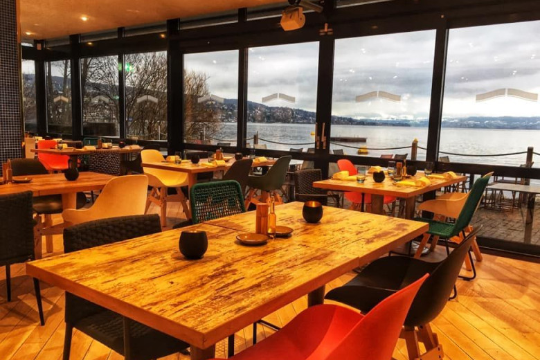 Friendly staff and guests. Great views of the lake. Relaxing music. The kurbis soup was nice.
