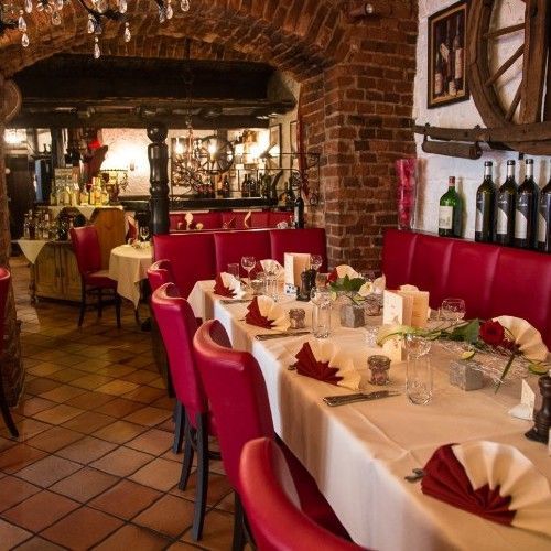 Das historische Restaurant im Landhaus Alte Scheune mit seinem traumhaften Gartenrestaurant ist die perfekte Hochzeitslocation in Frankfurt Nieder-Erlenbach. Bis zu 100 Gäste finden in den Räumlichkeiten platz. Im Gartenrestaurant kredenzen wir einen feudalen Empfang, der perfekte Ort für schwungvolle Reden und Ihre Hochzeitsansprache. In den historischen Räumlichkeiten servieren wir Ihr Hochzeitsmenü, alternativ kann im benachbartem, vollständig mit Zedernholz verkleideten Nebenraum, ein Buffet serviert werden.