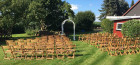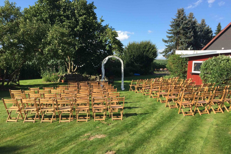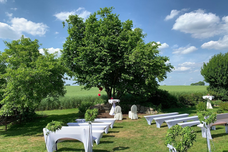 Idyllischer Garten mit wunderschönem Ausblick für Sektempfang und zum Feiern draußen
