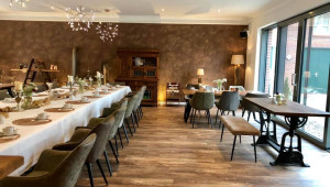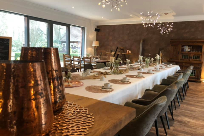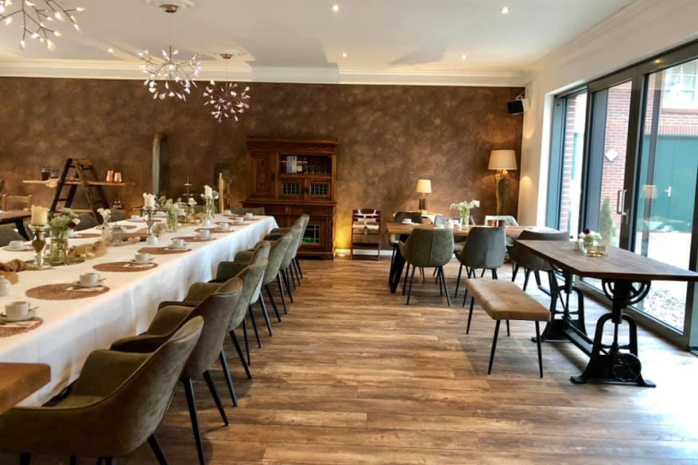 Unsere Diele in Wohnzimmer Atmosphäre bietet Platz für bis zu 160 Personen und Sie haben einen direkten Anschluss an unseren Garten. Die große Diele kann außerdem in 3 Räumlichkeiten separiert werden, falls Sie eine kleinere Feier planen