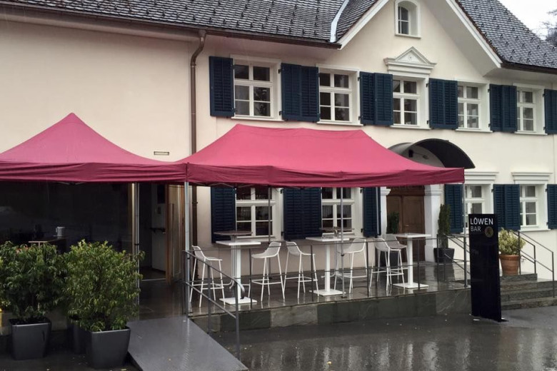Die Stadt Hohenems beschloss im Dezember 1965 den Löwen zu kaufen. Zunächst war geplant, ihn möglichst bald abzureißen, um einen modernen Kultursaal zu errichten. Dazu kam es aber aus budgetären Gründen nicht. 2001 übertrug die Stadt den Löwen an die städtische Immobiliengesellschaft. Im Februar 2002 nagelte Bürgermeister Christian Niederstetter den Löwen medienwirksam zu und kündigte den baldigen Abriss des Gasthauses und die Sanierung des Saales an. Viele Hohenemser/innen sprachen sich für den Erhalt des traditionsreichen Wirtshauses aus. Es dauerte dann wiederum einige Jahre, bis 2009 die Entscheidung zur Sanierung des gesamten Objektes getroffen wurde.