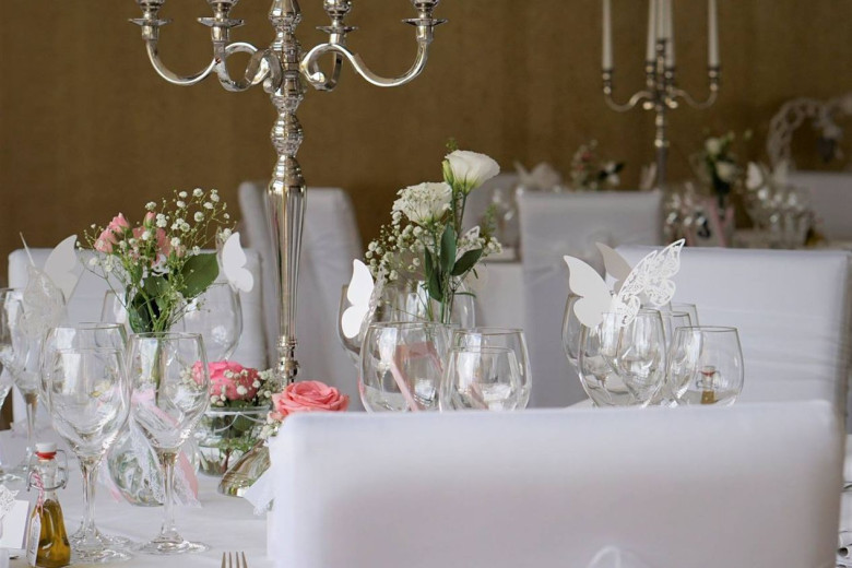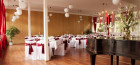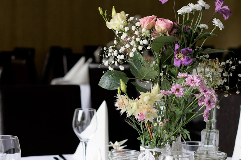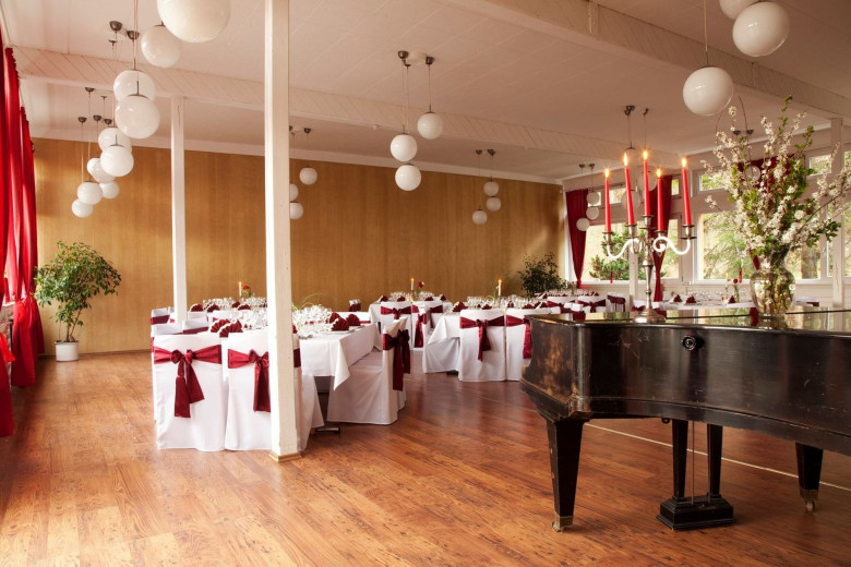Wir nehmen keine Raummiete, lediglich eine Pauschale für Umstuhlen, Tischwäsche und Reinigung