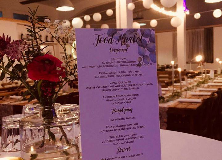 Außergewöhnlich - Industriehalle trifft auf Beach-Bereich. Diese Location macht Euren schönsten Tag unvergesslich und bietet Euch eine große Auswahl an internationalen Speisen in einer gemütlichen Atmosphäre. Ob Flying Dinner, Barbecue, Klassischer 3-Gang oder Food Market, alles ist für Euch vorhanden.