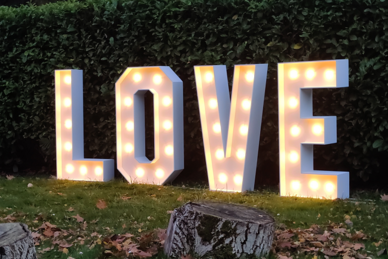 Egal ob Beschallung, Ambiente Beleuchtung, Vintage Lichterketten, XXL Leuchtbuchstaben oder Traubögen: Wir haben das passende Equipment!