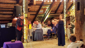 30 minütige Aufführung Stand-Up vor dem Publikum nach dem Abendessen.