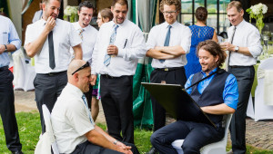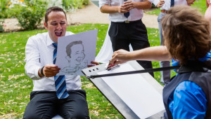 Suchen Sie nach kreativen und persönlichen Erinnerungen für Ihre Gäste? Als Karikaturen-Schnellzeichner fertige ich für Ihre Hochzeitsgäste persönliche Andenken an, die sie mit nach Hause nehmen können und eine bleibende Erinnerung sind. Bei der digitalen Zeichenvariante bekommt zusätzlich das Brautpaar alle Zeichnungen in digitaler Form überreicht und kann sich lange daran erfreuen. Und Natürlich ist das Zeichnen selbst schon eine Attraktion und viele Menschen sehen gespannt zu wie in nur drei bis fünf Minuten eine Karikatur entsteht.