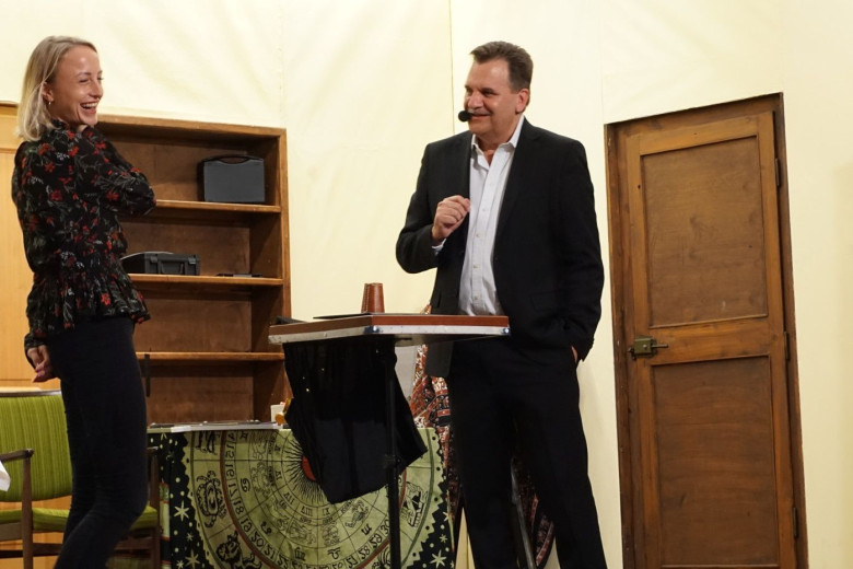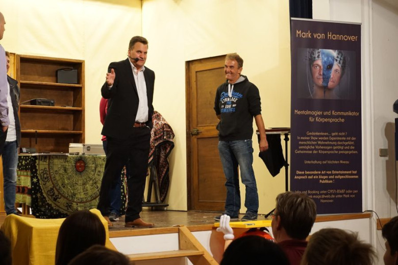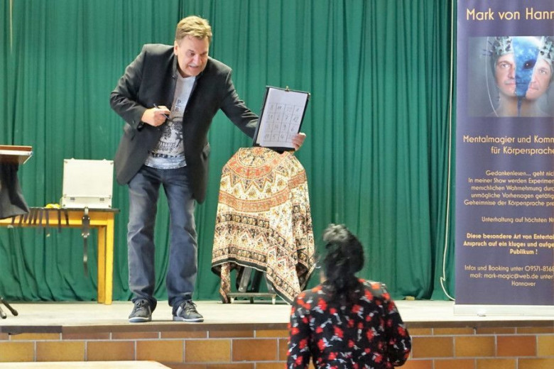 ca. 40 Minuten Bühne oder Stand up-Darbietung meiner interaktiven Mentalistenshow - mit anschließender Signierstunde an meinem Q & A-Stand (den ich mitbringe). 10 Bücher sind in dem Modul enthalten. Wenn jeder Gast ein Buch-Exemplar "Die Sprache des Körpers" erhalten soll, bitte Preis anfragen !. Die Buchexemplare werden natürlich mit einer persönlichen Widmung versehen. Selbstverständlich stehe ich bei dieser Gelegenheit, für die Gäste, gerne auch für Fragen (die kommen zur Genüge), Fotos und Infos zur Verfügung. Die Bücher eignen sich besonders >für Hochzeiten als einmaliges Gastgeschenk, als einmalige Erinnerung an eine besondere Veranstaltung, für Jung und Alt. Dieser Ablauf ist anders und macht Ihr gehobenes Event zu etwas ganz Besonderen. Man wird noch lange von diesem Ereignis sprechen und es in sehr positiver Erinnerung behalten. Bis 60 Personen, wenn mehr Gäste bitte Gage erfragen. Danke !