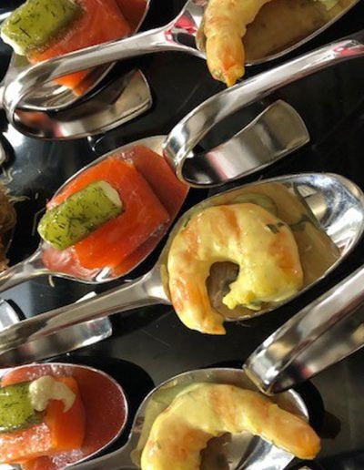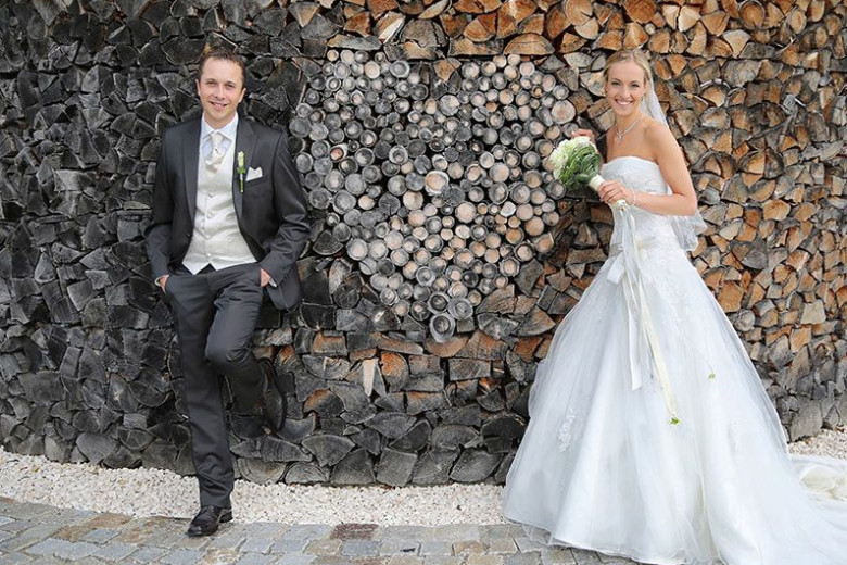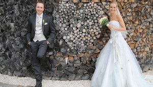 Bei Sonnenschein begrüßen wir unsere Gäste gerne mit einem kleinen Stehempfang auf der Holz-Terasse.