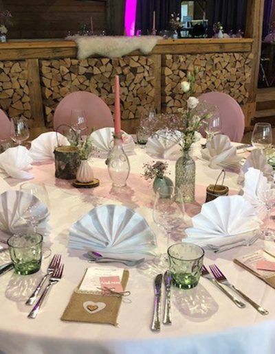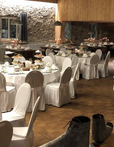 Für große Hochzeiten und Feste schmücken wir MÄSER´S Alp – den Saal mit Alp-Feeling und Bühne.