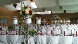 Ihr bekommt bei uns alles aus einer Hand: Weddingplanner, Baldachin, große Deko-Elemente, Tischdecken, Hussen, Tischdekoration (jegliche Arten von Vasen, Kerzenleuchtern, Windlichtern usw), gesamte Hochzeitsfloristik, Bedienungspersonal, Zeremonienmeister, Kirchendeko, Hochzeits-DJ, Beleuchtung, Traubogen uvm.