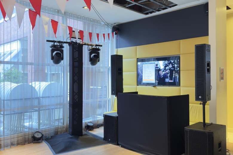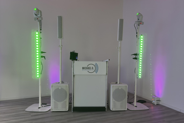 6 Akku LED Spots, 2 Movingheads auf Tower inkl. Verkabelung