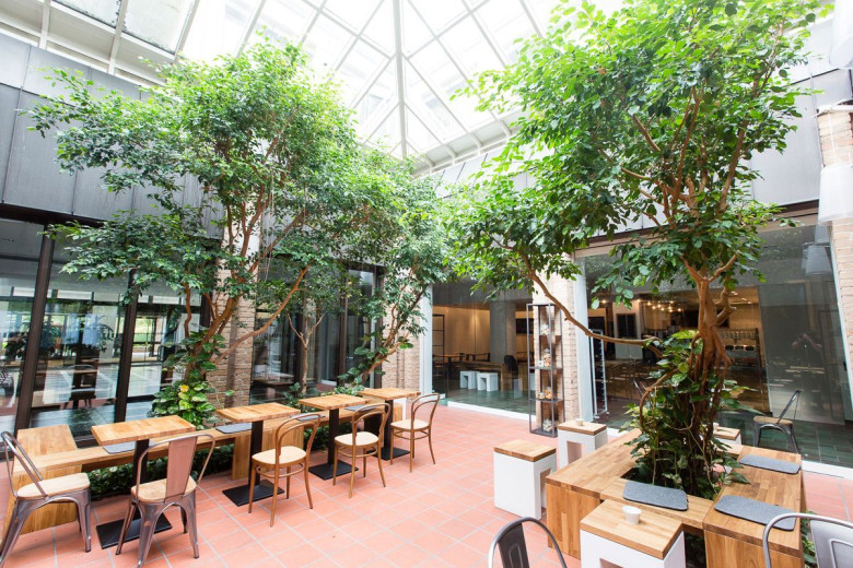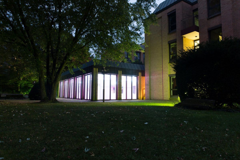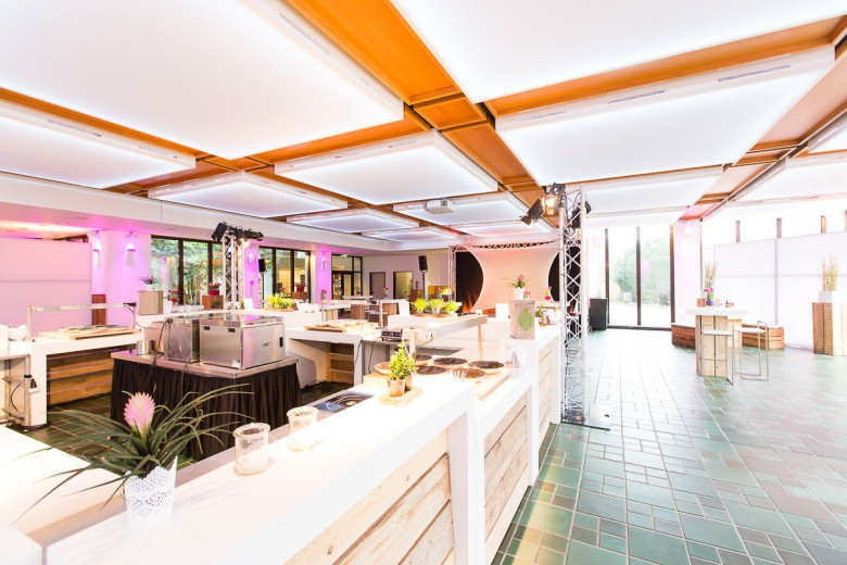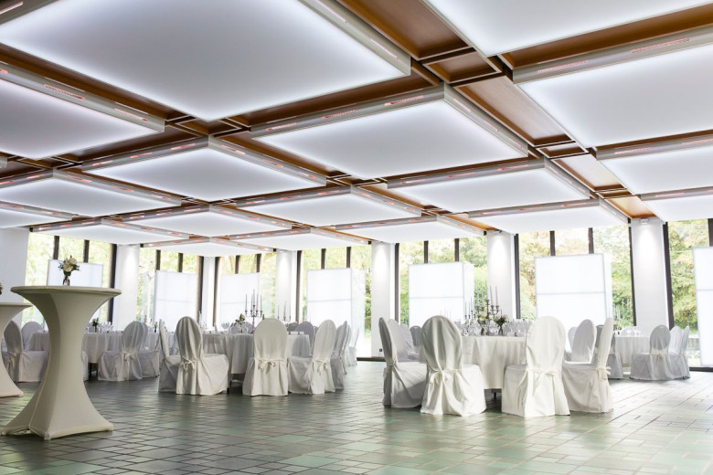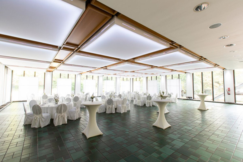 Die modernen und hellen Räumlichkeiten sorgen für ein fröhliches und offenes Ambiente. Durch die komfortable Raumaufteilung bieten sich diverse Möglichkeiten an, Eure Hochzeit in größeren oder kleinen Kreisen abzuhalten. Ein absoluter Hingucker in dieser Location ist das Atrium, welches durch seine große Fensterfront ein besonders helles und wohliges Ambiente schafft. Der wunderschöne Außenbereich eignet sich perfekt für einen traumhaften Empfang ihrer Gäste oder eine freie Trauung. Neben den lichtdurchfluteten Räumlichkeiten bei Tage, bietet die Location auch am Abend ein wunderschönes Lichtkonzept. Die moderne LED-Decke ist ein echtes Highlight am Abend und sorgt bei jeder Party für extra Stimmung. Farblich kann die LED-Decke an das Gestaltungskonzept, individuell an das Event angepasst werden um auch hier ein einheitliches und harmonischen Gesamtbild zu erhalten.