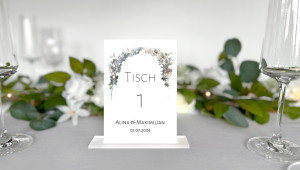 Unsere Tischnummer aus hochwertigem Acrylglas vereint Funktionalität mit Ästhetik und verleiht Eurer Hochzeit eine stilvolle Note. Diese Tischnummer ist die perfekte Wahl, um Euren Gästen dabei zu helfen, ihre Plätze mühelos zu finden, während sie gleichzeitig eine elegante Atmosphäre schafft