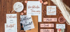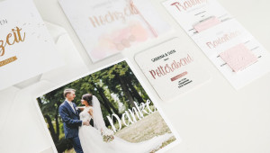 Von der „Save-the-Date-Karte“ über Einladung, Menükarten, Liederheft, Gastgeschenkanhänger und Willkommensschilder bis hin zur Danksagung – nur für Euch gemacht, so einmalig wie Eure Hochzeit.