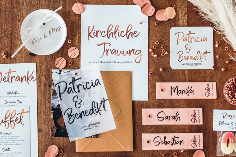 Von Anfang an bis zur Danksagung kümmere ich mich um Organisation, Gestaltung und Konfektionierung Eurer Papeterie.
