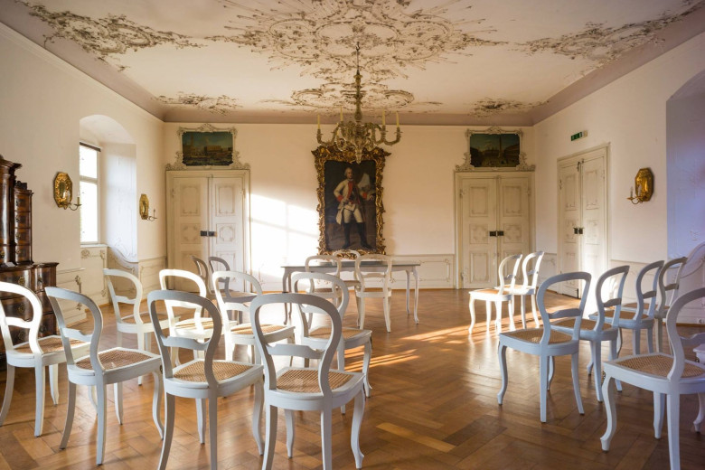 Die katholische Schlosskapelle ist ein barockes Kleinod, dass sich im Westflügel des Wasserschlosses befindet. Sie diente früher den Freiherren von Würtzburg als Hauskapelle. In ihrem Inneren finden bis zu 90 Besucher Platz. Die Kapelle ist beheizbar und verfügt über ein eigenes Herrschafts-Sitzgestühl auf Höhe des Altars, das sich hervorragend als Sitzplatz für Trauzeugen und Fotografen eignet.