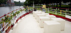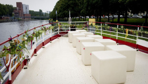 Das neuhergerichtete Salonschiff aus den 20er Jahren überzeugt mit nostalgischem Charme und liebevoller Einrichtung bestehend aus einem Mix aus Tischen und Lounge.