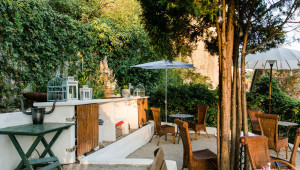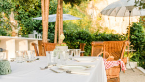 3 einzigartige Felsenterrassen auf 3 Ebenen stehen zur Verfügung, sowie ein großer Küchentisch am Kaminfeuer in unserer Eventküche.