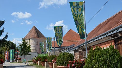 An old renaissance building where a former Austrian king lived a while. Used as a location for different events. In the front area there are some streetkitchen and a bar and you can sit outside there in summer.