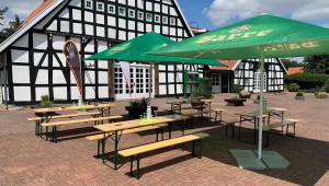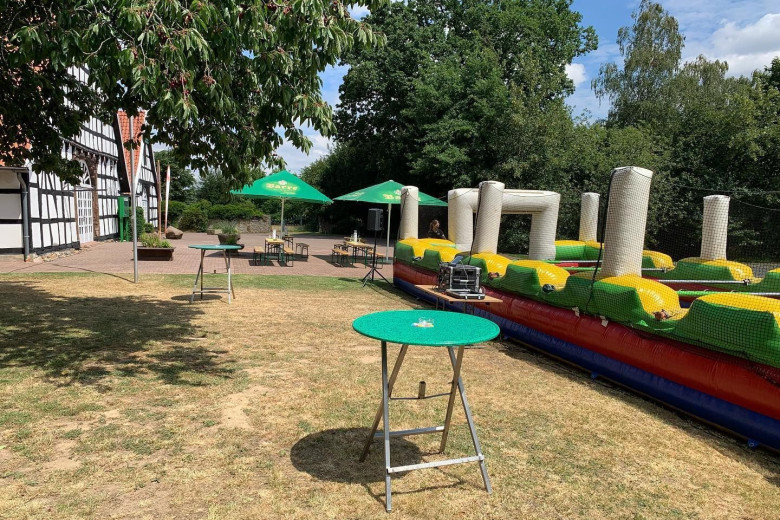 Eine sehr schöne Örtlichkeit zum Feiern egal welcher Art. Getrennte Feiereien sind möglich, denn neben an war eine Hochzeit. Dazu ein Top Cateringservice, wo man alles inklusive DJ, Getränke, Essen usw. bekommt. Auch innen ein schönes Fachwerkambiente.