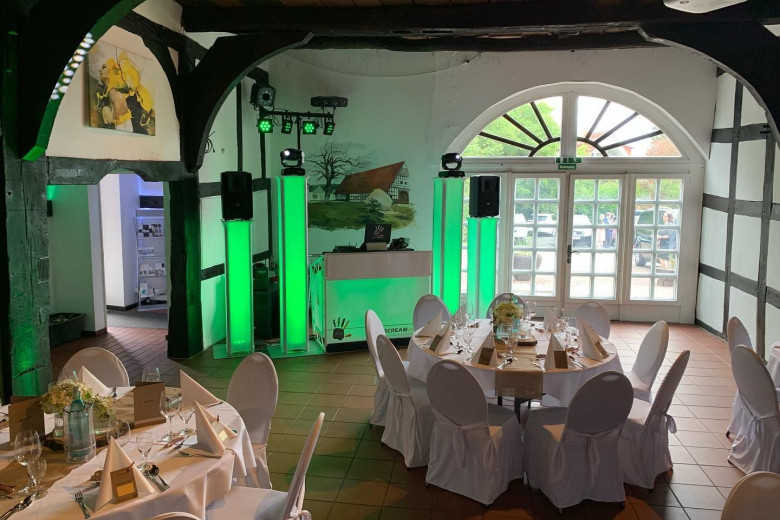 Eine sehr schöne Feierdeele mit gutem 360 Grad Service, auf Wunsch kümmern die sich um alles Essen, DJ, Service. Die Räume sind groß und urig. Es war insgesamt ein sehr schöner Abend. Es sind ausreichend Parkplätze vor der Location vorhanden.