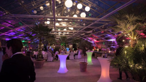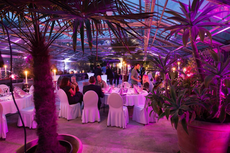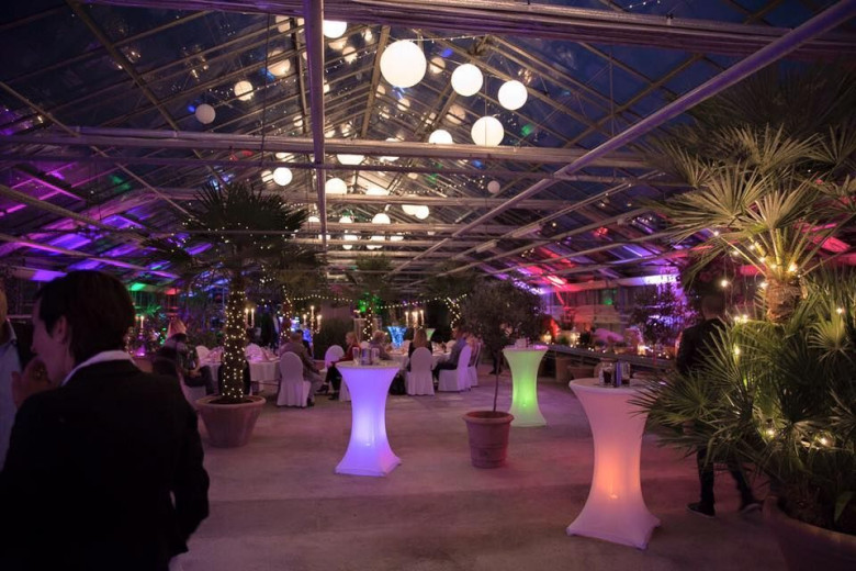 Das Eventgewächshaus kann ganzjährig gemietet werden und bietet Platz für bis zu 150 Personen für Bankette und 200 für Seminare oder Stehaperos je nach Aufteilung.