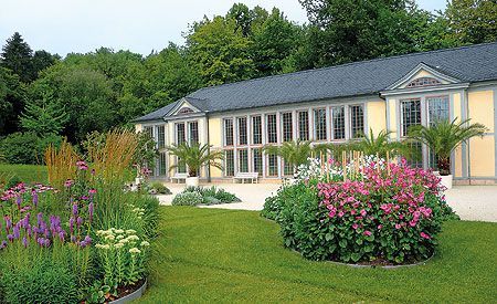Der einstöckige Bau mit dem betonten Mittelteil und zwei etwas zurückgesetzten Seitenflügeln ist in seiner strengen, klaren Linienführung, die durch die großen Rasenflächen davor noch betont werden, ein besonders schönes und gelungenes Beispiel im Geiste des großen preußischen Baumeisters Schinkel.