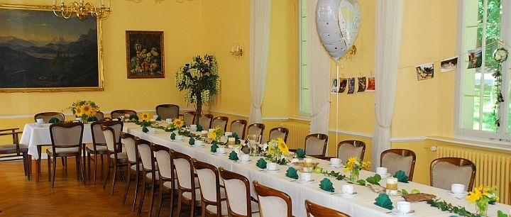 Der sich anschließende Park ist eine wunderschöne Umgebung für die Gastronomie Rosenau mit Außenanlagen und Cafe für essen und trinken im Park.