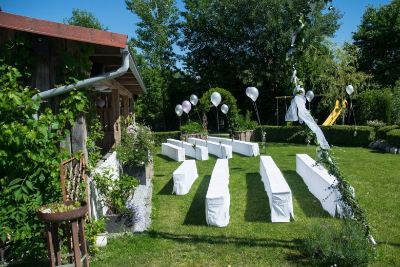 Unser Lokal bietet viele Möglichkeiten für Ihre Traumhochzeit. In unserem romantischen Garten ist es möglich, sich standesamtlich oder frei Trauen zu lassen. Anschließend mit einem Gläschen Sekt während der Agape im Garten herumschlendern und die Blumenvielfalt genießen.