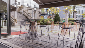 Covid-19 macht es möglich: Bands nutzen die Lokation und erfreuen auf der Terrasse unter schönen alten Bäumen Publikum und Flanierende. Umrahmt vom Großstadlärm serviert die Geöffnete Gastronomie Getränke (nicht kostenlos). Da spendet man doch gerne für die Musiker...