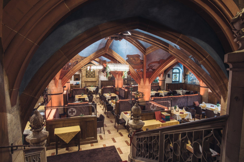 The inside of the restaurant is spectacular, with gorgeous wall paintings and glass stained windows. The restaurant is nicely organized with private eating booths so it’s romantic and cozy for 2 people but will also be accommodating for a large group of people. Hence ambience is 5 star. The food was delicious, nice big portions, very authentic German and came fast. Menu had many options for drinks. Additionally, the service was excellent, very professional, friendly and helpful. Would most definitely want to come again and recommend.