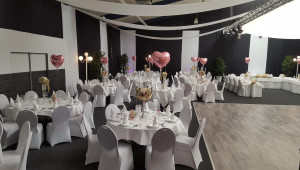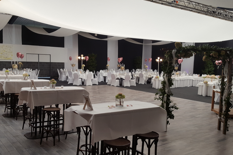Unsere Eventhalle bietet Platz von 80 bis für bis zu ca. 350 Personen. Wir können unsere Halle jeder Personenanzahl anpassen, sodass der Raum nicht zu groß oder zu klein wirkt!