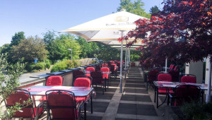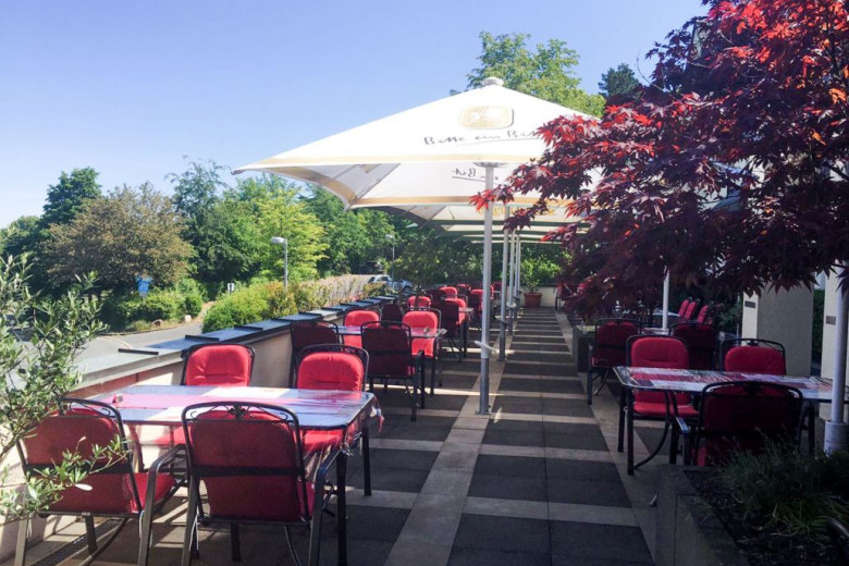 Polite, friendly and helpful service, good typical meals, clean,a nice terrace with an overview of the hilly Stiepel and close to the monastery.