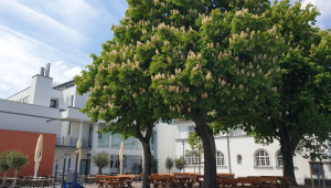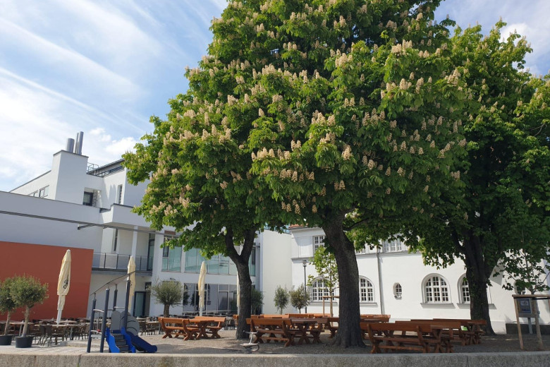 Die große Terrasse ist bei gutem Wetter geöffnet und lädt zu langem verweilen ein. Genießen Sie die kulinarischen mediterrane und asiatiasche Küche auf unserer großen Terrasse und unter Kastanienbäumen.