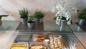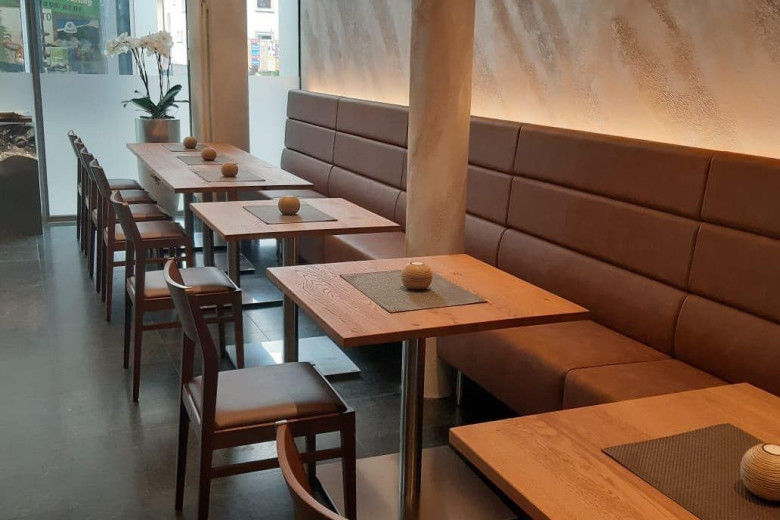 Wir haben eine mediterrane und asiatische Küche. Die Räumlichkeiten bietet Ihnen im Innenbereich für bis zu 100 Personen Platz.