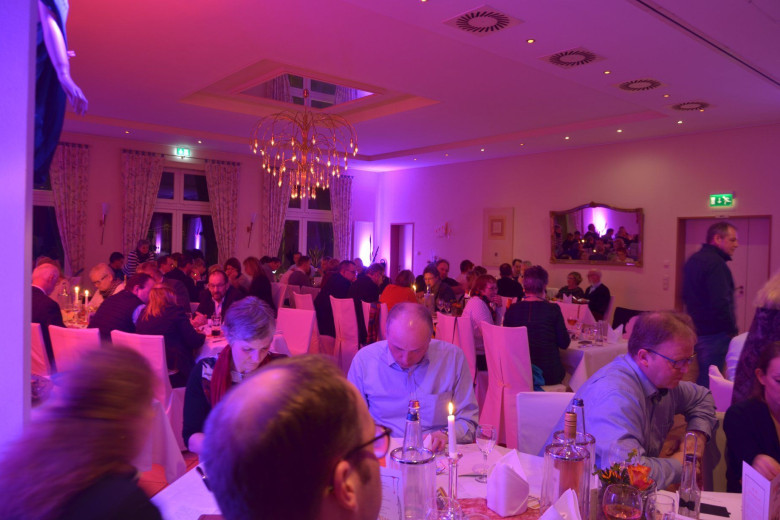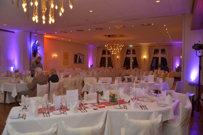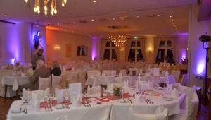 Mit Hilfe moderner LED-Technik und hellen Wandelementen können wir unserem Festsaal farblich