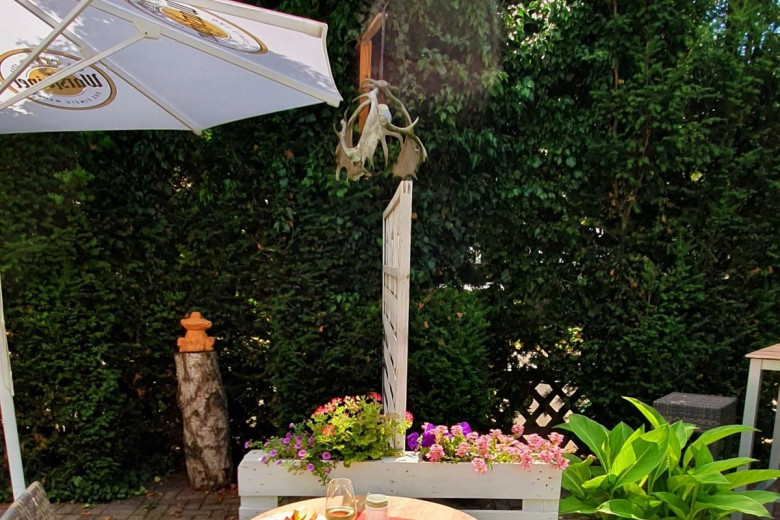 Schöner Biergarten, in dem man sich auch mit Abstandsgebot hochwillkommen und daher wohl fühlt
