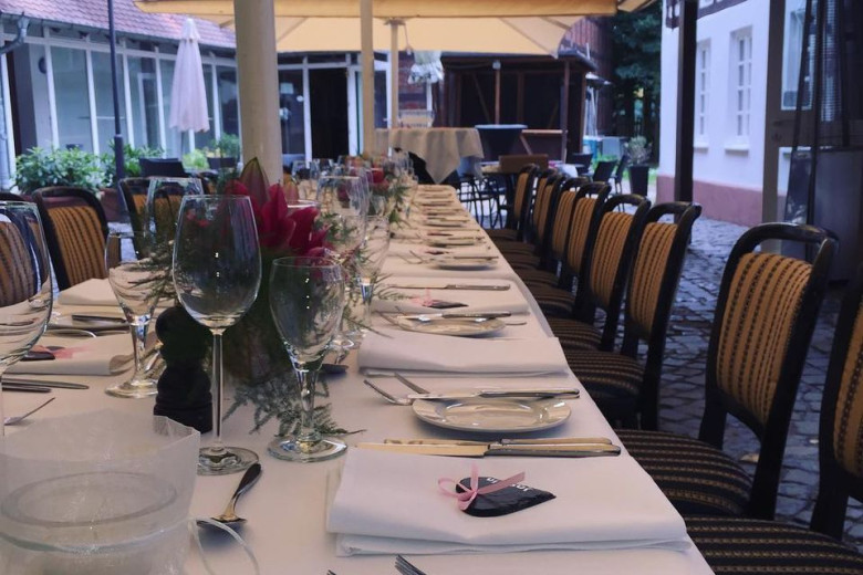 ...dem etablierten Restaurant in der elegant, rustikalen Atmospäre einer 600 Jahre alten Fachwerkmühle.