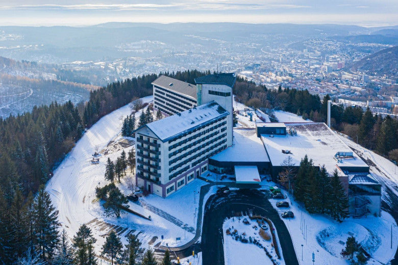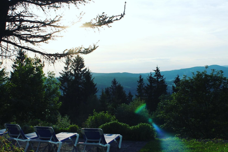 Wir haben für Sie im Ringberg Hotel ein neues gläsernes Restaurant gebaut. Von Ihrem Tisch aus können Sie den Blick 180° in die herrliche Suhler Landschaft schweifen lassen, vorbei an der steinernen Skulptur der Jagdgöttin Diana.