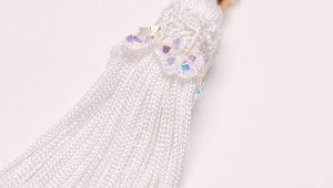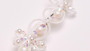 Aufwändig handgefertigter Schmuck aus hochwertigen Garnen, Perlen und Swarovski-Kristallen.