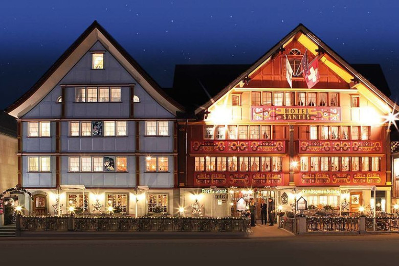 Das Romantik Hotel Säntis ist Ihr Refugium mit Stil. Das Hotel befindet sich direkt am historischen Landsgemeindeplatz in Appenzell. Im Empfangsbereich (Parterre) befinden sich neben der Rezeption das Restaurant Landsgmendstobe, die Säntis Bar sowie die beiden Seminarräume Ebenalp und Kronberg. Im 1. Stock geniessen Sie die wunderbare Aussicht auf das Dorfzentrum. Unser Feinschmecker-Restaurant grenzt direkt an den grossen Festsaal, der für Anlässe mit bis zu 120 Personen ideal ist. Auf der gleichen Etage befindet sich der Seminarraum Hoher Kasten, der Raum für rund 40 Personen bietet. Das Hotel verfügt über 36 liebevoll eingerichtete und mit zeitgemässem Komfort ausgestattete Zimmer. Unser Untergeschoss ist Ihrer Entspannung gewidmet: Hier finden Sie eine Sauna mit Erlebnisduschanlage, ein Solarium und Ruheligen vor.