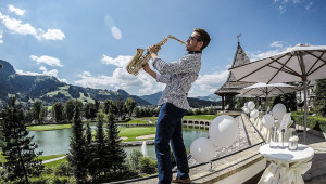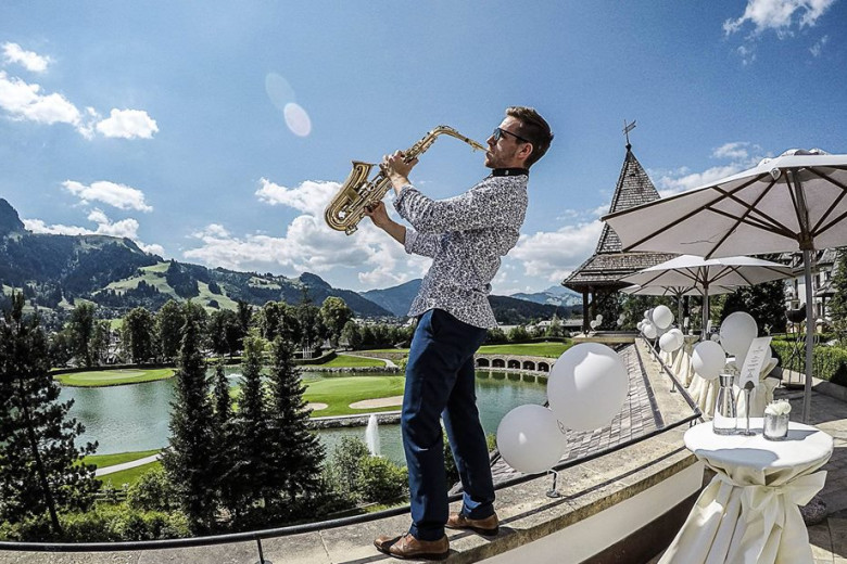 Saxophonist/Saxophonspieler bei der Agape: Genießen Sie smoothe Saxophonmusik von Saxophonist SaxoBen in angenehmer Lautstärke beim Sektempfang oder während der Agape. Der Saxophonist performt zu feinster Loungemusik und sorgt für optimale Untermalung des Hochzeitsempfangs. Ein Garant für ein musikalisches und optisches Highlight auf Ihrer Hochzeit.