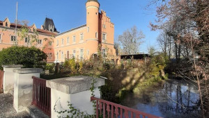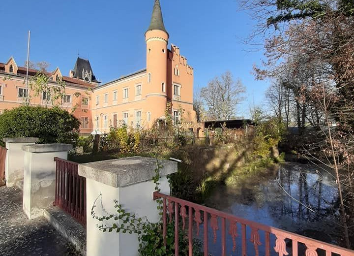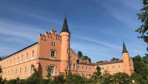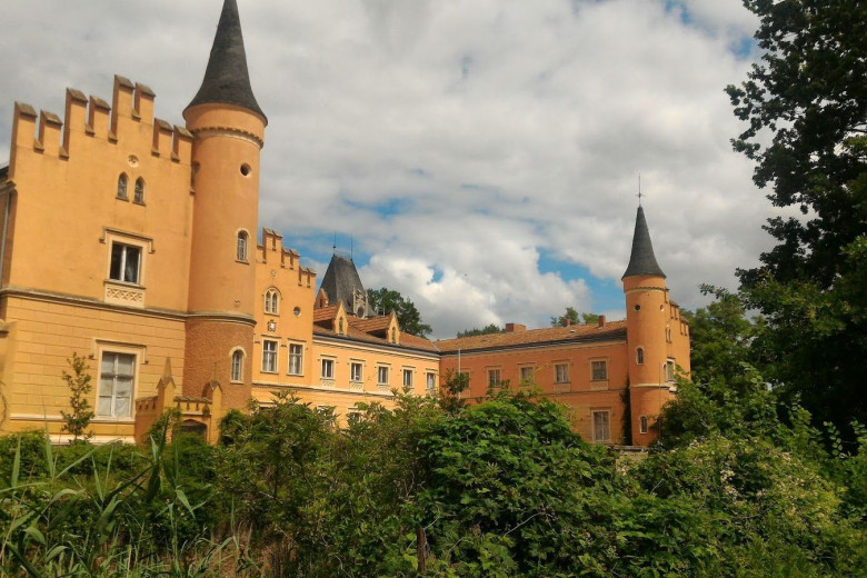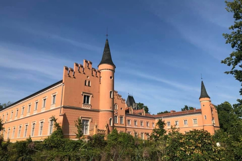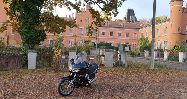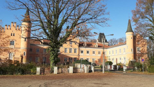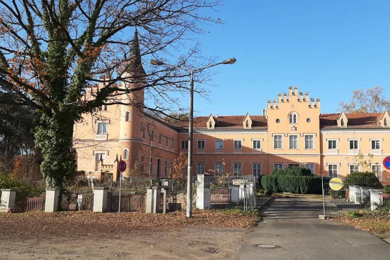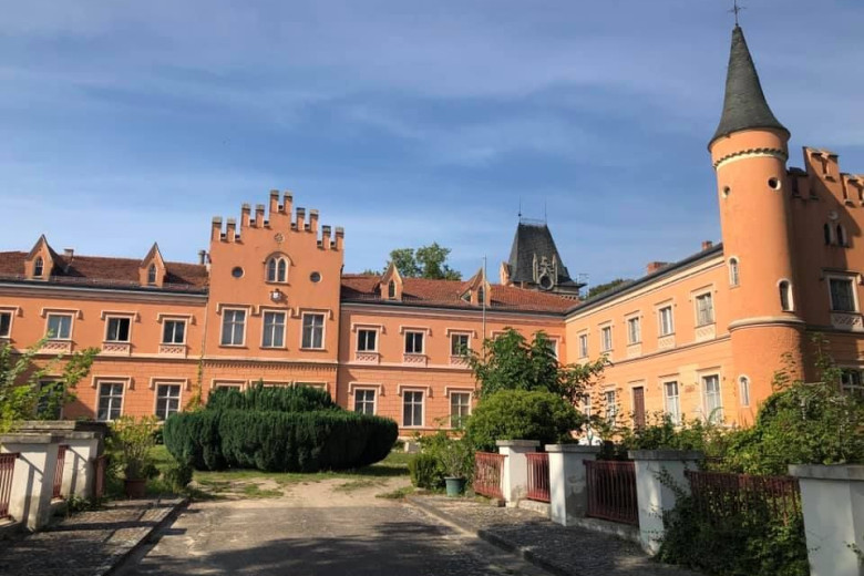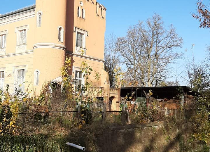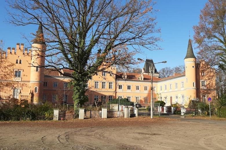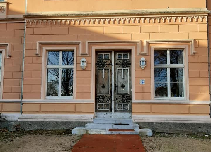 A beautiful mansion in Gusow, a bit old. The paint is peeling a bit, but the house has charm. Unfortunately not open to the public due to Corona.
