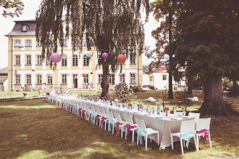 Die Eventlocation an den Toren zur fränkischen Schweiz bietet Ihnen alles, was Sie für eine perfekte Veranstaltung benötigen. Ob in der eigenen großen Schlosskapelle mit Blumenschmuck an den Bänken, eine freie oder kirchliche Trauung im Garten vor dem Springbrunnen, standesamtliche Trauung im 1. Stock oder Erdgeschoss, Sie haben alles in der Nähe und können frei planen. Nach der Trauung kommt die eigentliche Begrüßung der Gäste, der klassische Empfang. Mit einem sommerlichen Empfang vor und auf der Terrasse starten Sie die lang geplanten Feierlichkeiten und genießen die Aufmerksamkeit. Beim Hochzeitsdinner haben sie die Qual der Wahl: Ihr eingedecktes Hochzeitsdinner an runden Tischen im 1. Stock oder im Erdgeschoss, beide Etagen haben das gewisse Flair, was eine Hochzeit zu einer Traumhochzeit macht. Dieses Schloss ist die Location für Events und Hochzeiten in Franken.