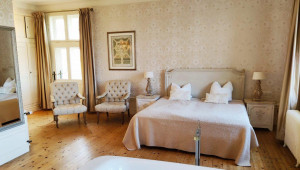 Auch in dieser atemberaubenden Location geht die Hochzeitsfeier irgendwann zu Ende. Im Schloss Krugsdorf verbringen Sie die Nacht in der romantischen Hochzeitssuite mit Panoramablick, Balkon, freistehender Badewanne und Doppeltusche. Wir schenken jedem Brautpaar mit der Buchung unserer Location eine Übernachtung.
