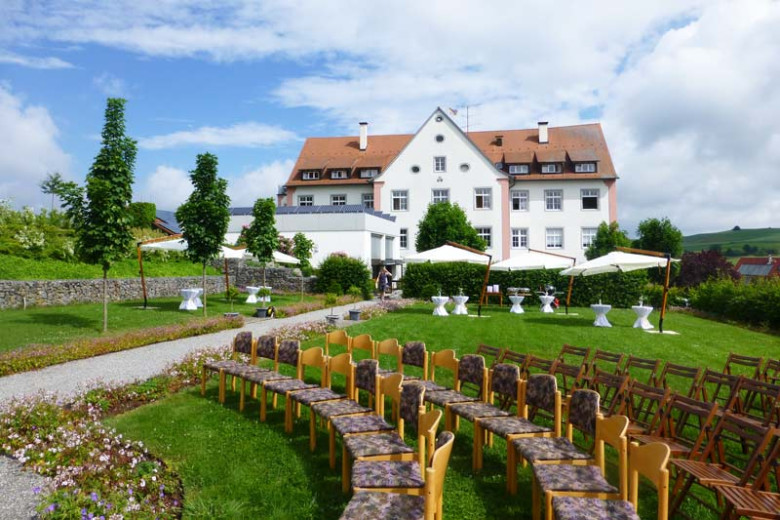 Feiern und wohnen Sie mit Ihren Gästen in der märchenhaften Atmosphäre in der romantischen Hochzeitslocation nahe der Schweiz.