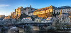 As the name already suggests, this is a former castle. The hotel occupies the lower part of the castle (where the guests rooms and the stables used to be in the past). The upper part is the actual castle, which can be visited (entry fee required). The hotel has a lot of fun activities: table tennis, pool table, fitness room, sauna, swimming pool, german bowling (Kegeln), smoking lounge, TV room with large couches. Most of the rooms have a view towards the river. The rooms at the base floor have actually 2 levels: the first one looks rather like a guest room, while the bedroom is upstairs. The rooms on the upper levels are smaller and have smaller windows, which are protected by a glass panel in front, so kids won't fall out. Food is great at their restaurant and they have a lot of home brewed liquors. You can even buy some as souvenirs.