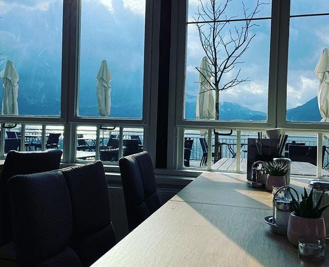 Unser Restaurant mit blick auf den See, bietet Platz für ca. 45 Personen.